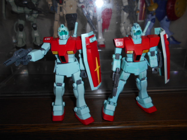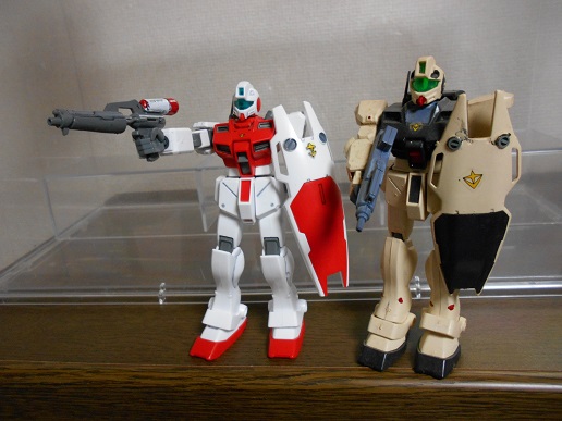 10数年前に作ったHGUC ジム(右)と並べました。コチラも合わせ目けしなどをやりましたがあまり上手くいきませんでした。